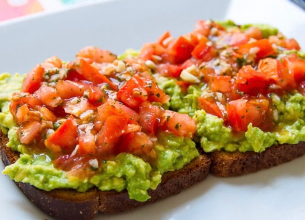 1. Tostada de aguacate con tomate
